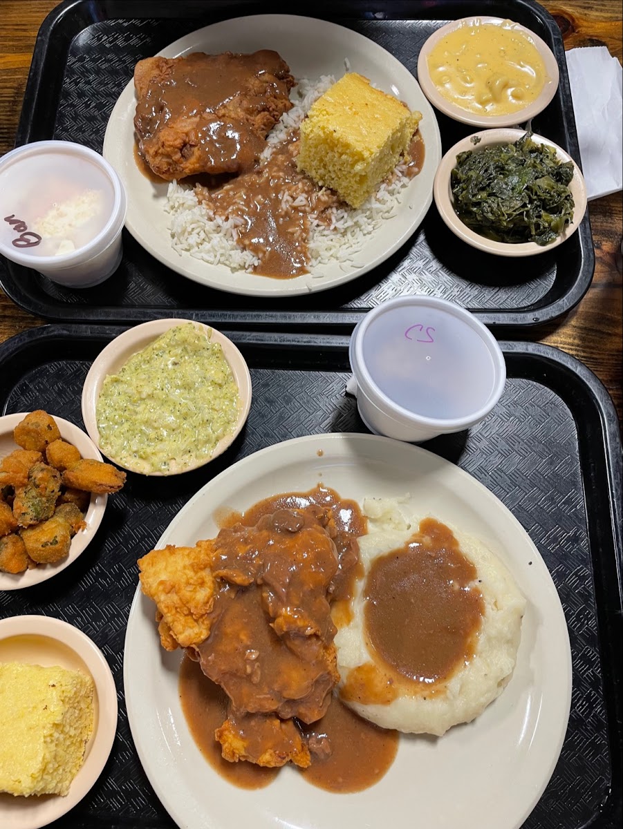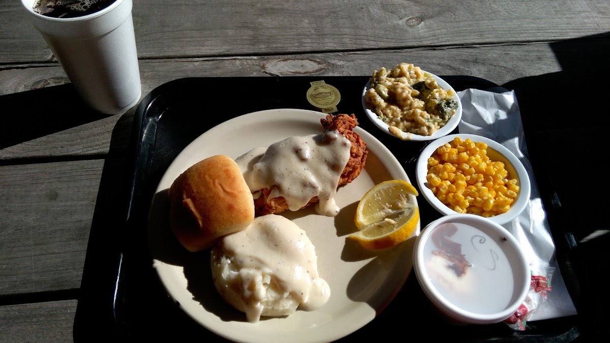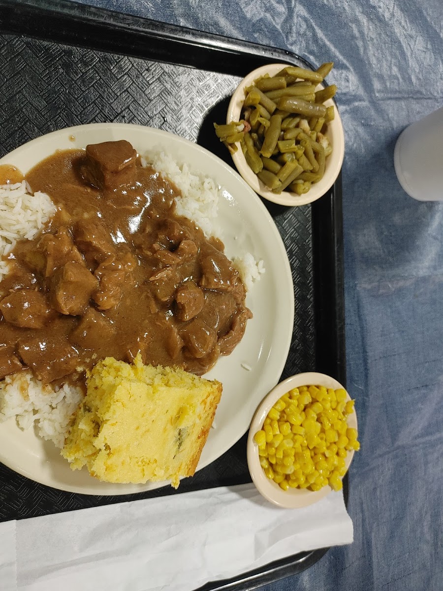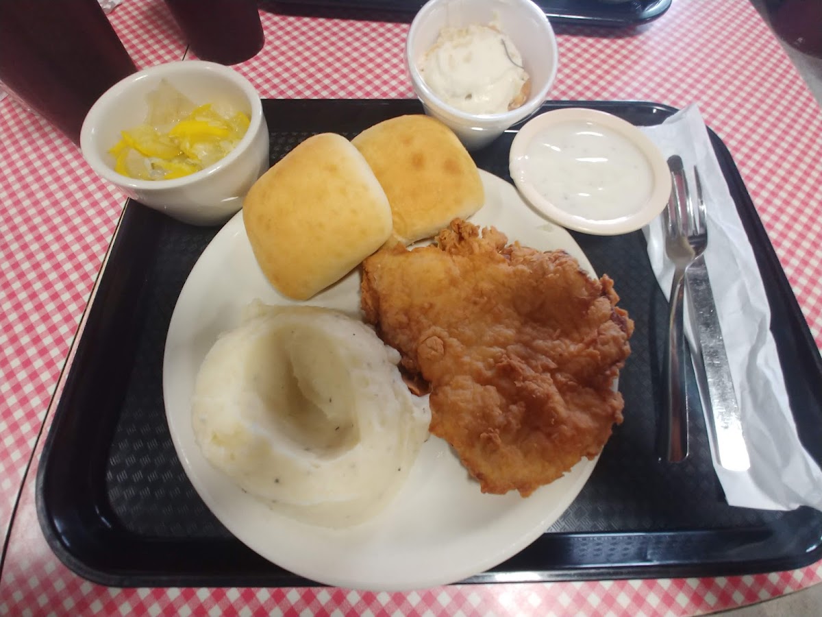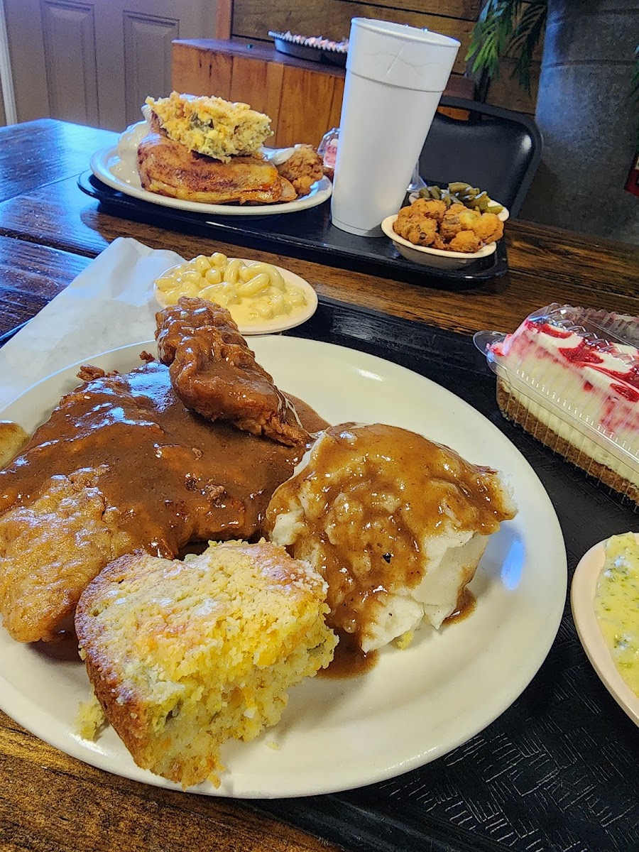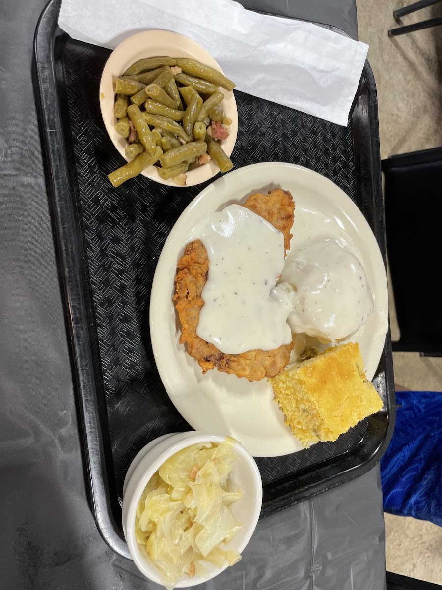 Great food, quick, friendly service! We had a stuffed bell pepper that was enormous! Chicken fried steak wasn’t huge but was tasty. Also the jalapeño cornbread is awesome
